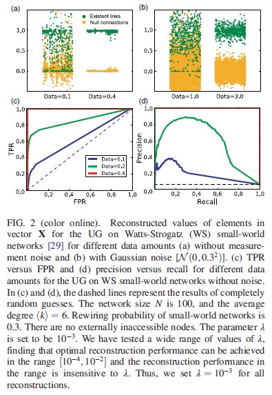 王文旭教授及其科研团队在PRL上发表了基于the lasso方法鲁棒性重构复杂网络的文章,并用最后通牒博弈,电阻网络,通信网络很好的验证了该方法。