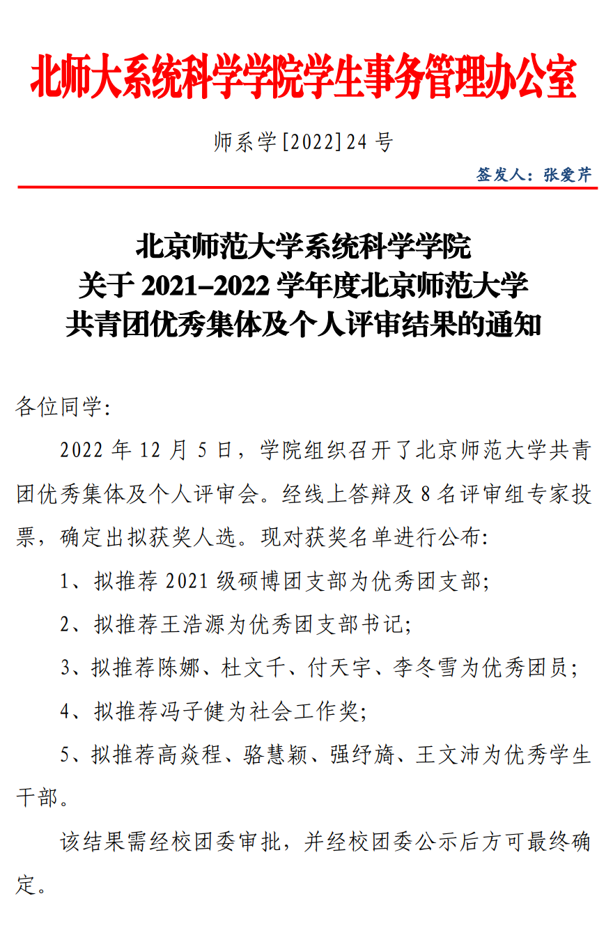 关于2021-2022学年度swag免费影片 共青团优秀集体及个人评审结果的通知