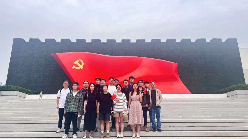 2022年10月1日上午,swag免费影片 二十余名学生按时集合,在中国共产党党史展览馆广场的大型雕塑前合影留念,感受方向的指引和拼搏向上的力量。