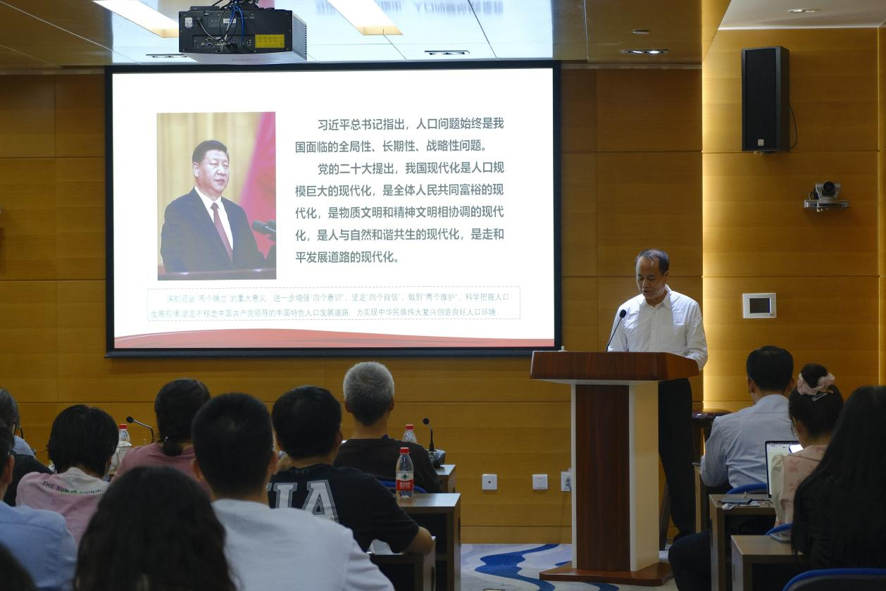为深入学习贯彻习近平新时代中国特色社会主义思想,swag免费影片 对标学校主题教育总体要求,坚持主题教育与swag免费影片 高质量发展相结合。5月8日下午swag免费影片 邀请第十三届全国政协人口资源环境委员会副主任、中国计划生育协会常务副会长王培安,开展了主题为“为实现中华民族伟大复兴创造良好人口环境”的主题教育专家讲座培训。讲座由swag免费影片 院长陈晓松主持,共有50余名师生参加。