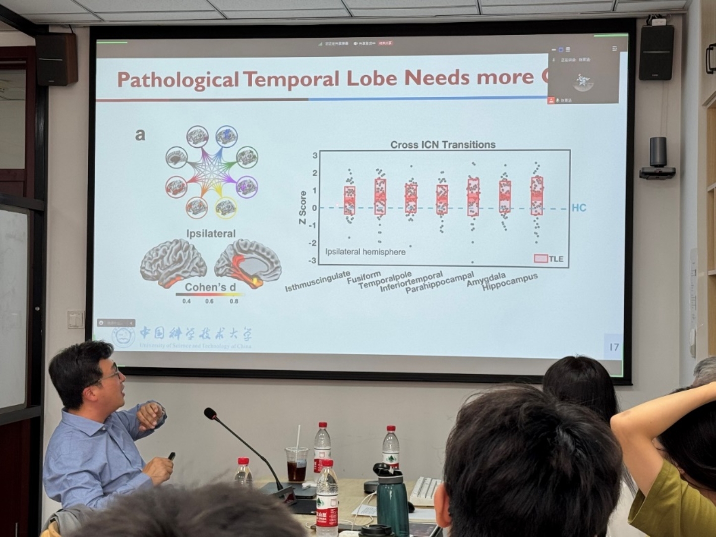 2024年9月25日,swag免费影片 脑与认知方向首次师生研讨会顺利开展。本次活动有幸邀请到来自中国科学技术大学生物物理学博士、心理学系特任研究员、博士生导师何晓松研究员来为swag免费影片 从事脑与认知方向研究的老师和同学们进行了题为《网络神经科学在癫痫手术中的应用:从功能磁共振视角得到的启示》的交流报告。何晓松研究员主要从事运用多模态脑成像和网络神经科学方法分析癫痫发病机制和预后方面的研究,其以第一作者的身份在Science Advances,Brain,Neurology等期刊发表论文40余篇。何晓松研究员基于功能磁共振数据、结合网络科学的方法,在分析难治性颞叶癫痫的治疗方案、临床风险、手术预后等方面积累了丰富的研究经验。swag免费影片 脑与认知方向的王大辉老师、陈育涵老师、廖旭红老师、邵宇秀老师,以及相关方向的多位博士、研究生同学,一同参加了此次活动。