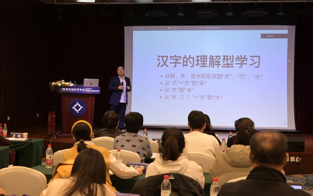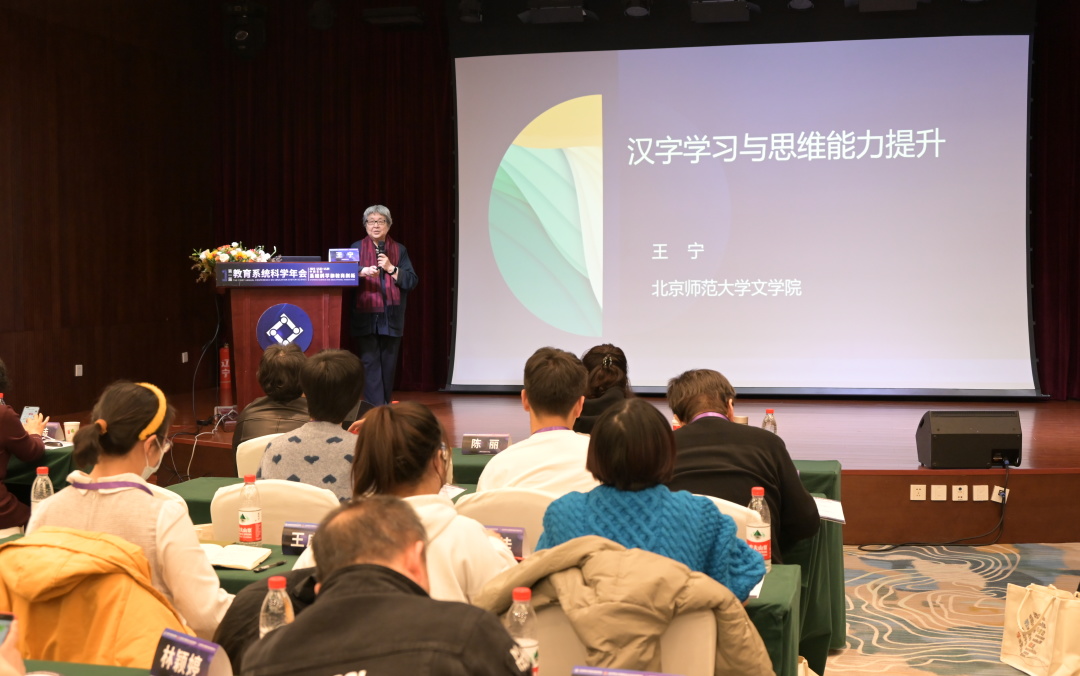王宁先生报告的主题是《汉字学习与思维能力提升》,王宁先生认为,用系统科学的理论原则认识汉字、建构了汉字构形系统后,语文教学中的汉字教育具有了理性,汉字教育的丰富内涵和深刻意义已经彰显。王宁先生主张打破用西方的“教育测量方法”测算汉字教学效果的做法,用渗透、系联、提问等方法,带领学生认识汉字的表意特性,发掘汉字汉字的文化涵义,分析汉字的构形理据,让学生在理解中学习汉字,将汉字教育贯穿小学、初中和高中全过程,全方位提升学生的批判性思维能力。