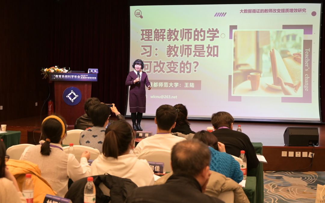 王陆老师做了题为《理解教师的学习:教师是如何改变的?》的报告,展示了基于大数据的可视化的教师内外交互的改变过程,为进一步理解教师的专业学习提供了新的视角,为教师改变的研究提供了新的方法。