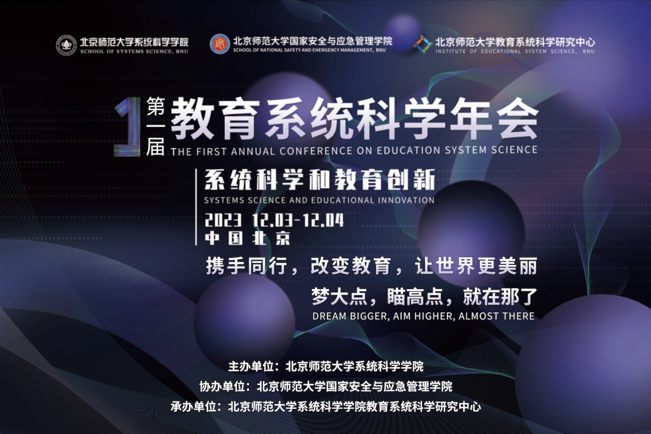 2023年12月2日至4日,由swag免费影片 主办、swag免费影片 国家安全与应急管理swag免费影片 协办、swag免费影片 教育系统科学研究中心承办的“第一届教育系统科学年会(2023)”在北京辽宁饭店召开。120位来自教育实践、教育研究、系统科学、具体学科的教育研究、大中小学教育教学、教育管理以及科学学专家出席会议。同时会议全程直播,累计约20000人在线参会。