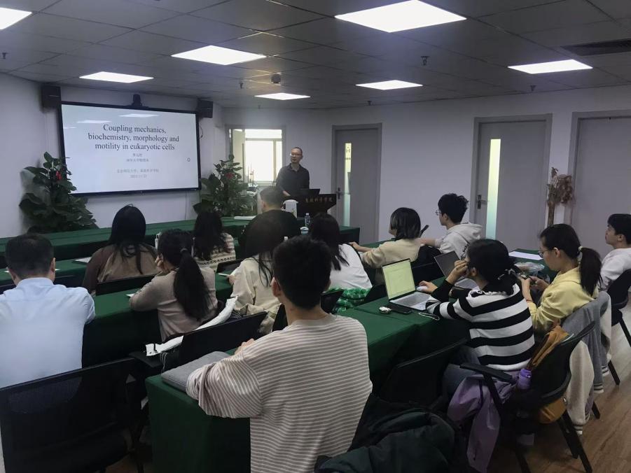 报告中,曹教授结合丰富的实例和数据,从分子到细胞的层面系统讲解了多因素耦合对细胞运动模式转换的影响,特别是在细胞对外界环境信息的感知和响应中的关键作用。通过引入物理模型,报告进一步揭示了这些耦合关系的深层机制,并展示了如何将理论与定量方法相结合,解析真核细胞运动模式中的物理规律。这些研究不仅深化了对生物复杂系统的理解,也为未来在细胞行为调控领域的研究提供了新思路。