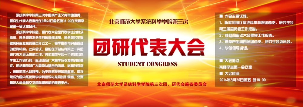 第三次中国共产主义青年团团员、研究生代表大会拟定在3月25日周五晚18:00在京师学堂第一会议室召开。