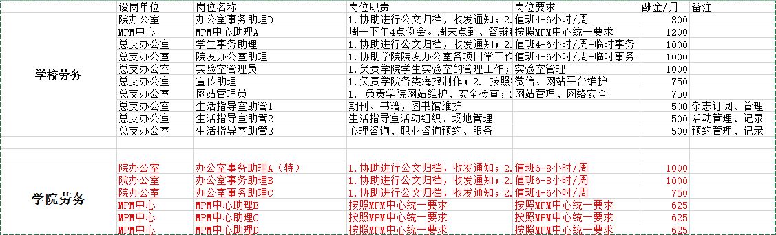 岗位汇总表中是可报名的岗位及每月的酬金,3月5日(下周一)会安排面试和培训环节。