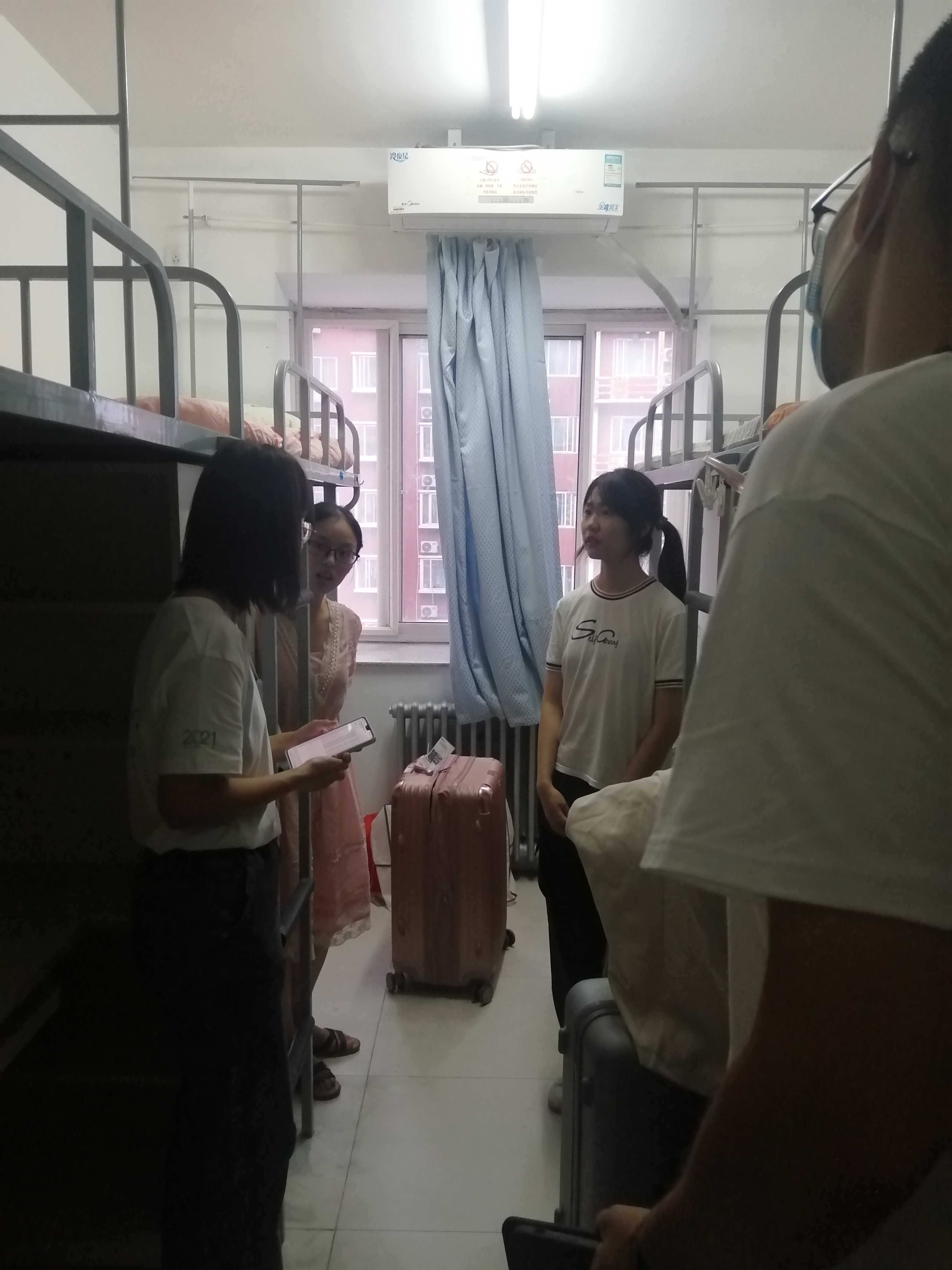 2021年9月5日下午17:00,紧张而忙碌的迎新工作收尾。下午17:30,团委书记王娟、研会主席陈娜和团委副书记任峻泽一起走访本部校区swag免费影片 新生宿舍。他们带去了swag免费影片 对新生同学们的温暖关怀。他们依次前往学十六、学十五、学四、学三走访swag免费影片 新生宿舍。