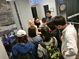 趁着"超级蓝月"的余热未过,同学们还参观了位于坦佩校区跨学科A楼的月球探险博物馆。漂亮的讲解员小姐姐十分热情和认真地向我们作了有关介绍,让我们了解和见识了许多新奇有趣的东西。此次月球探险博物馆之行着实是一次开阔视野、增长见识的经历。在这里,我们不仅对人类对月球的探索历程有了新的认识,还了解了月球不同表面物质的特点等,甚至亲眼目睹了从环月轨道探测照相机实时传输过来的月球画面以及一块真正来自月球上的石头,可谓是一饱眼福、大开眼界。