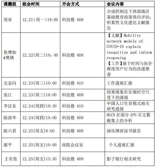 下周组会汇总信息如下: