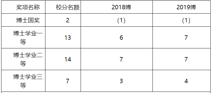 其中国家奖学金名额方案为假想方案。待确定国家奖学金归属后,将按照“若该类别(硕士、博士)国家奖学金归属在同一组别,减少该组别1个一等学业奖学金名额,增加对应类别另一组别1个一等学业奖学金名额”的原则对上述方案进行调整。