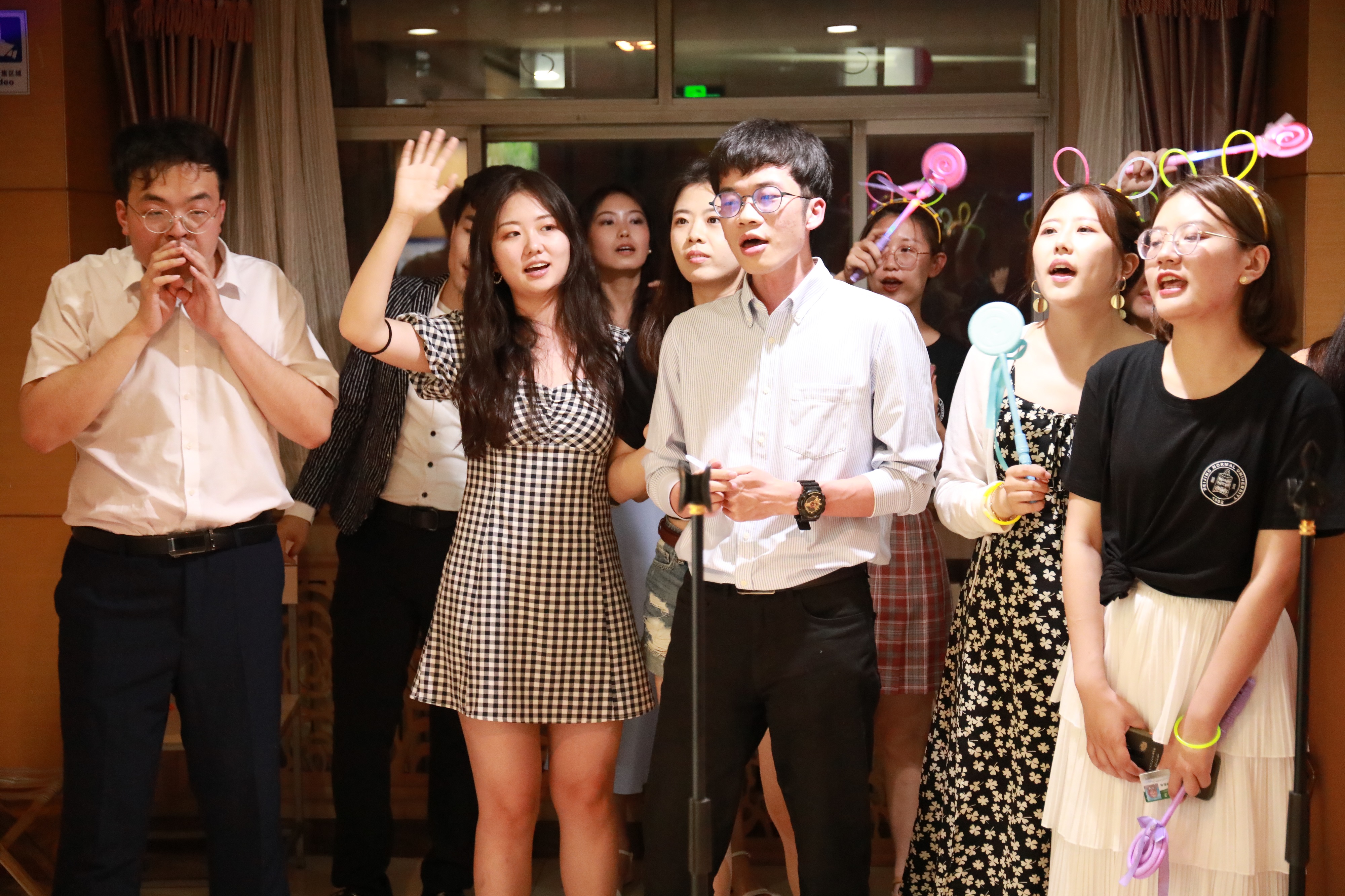 随后,毕业班全体同学合唱《你的答案》,歌声充满了大家面对未来困难的勇气。即使生命如尘,仍愿岁月如歌。合唱将全场氛围引向高潮,毕业生们纷纷上台献出他们精彩的表演,并在欢快活泼的氛围中齐呼“毕业快乐!”。