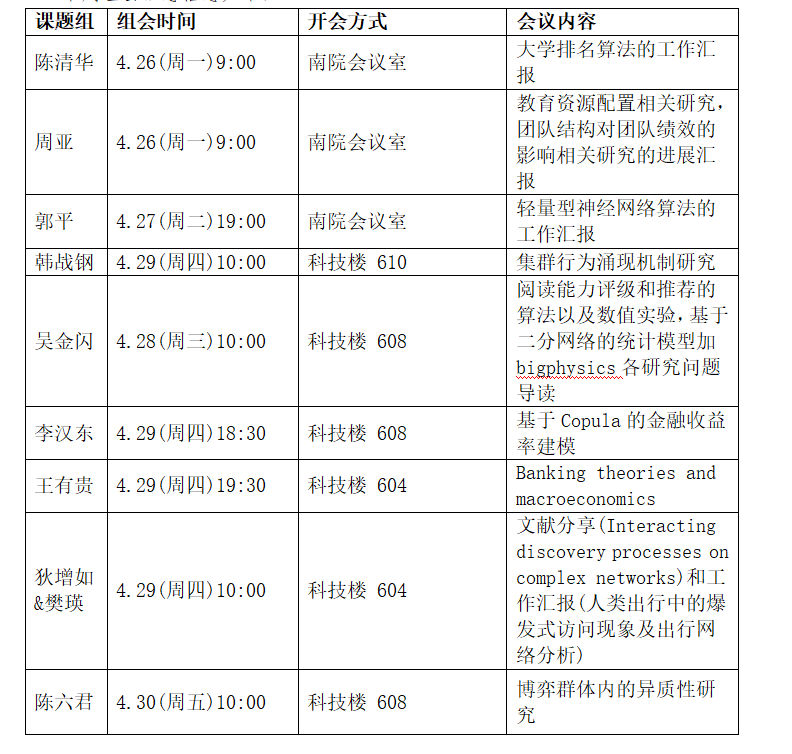 部分组会时间未确定,请感兴趣的同学加入开放组会交流QQ群,群号为 :790729133,及时跟进相关信息!