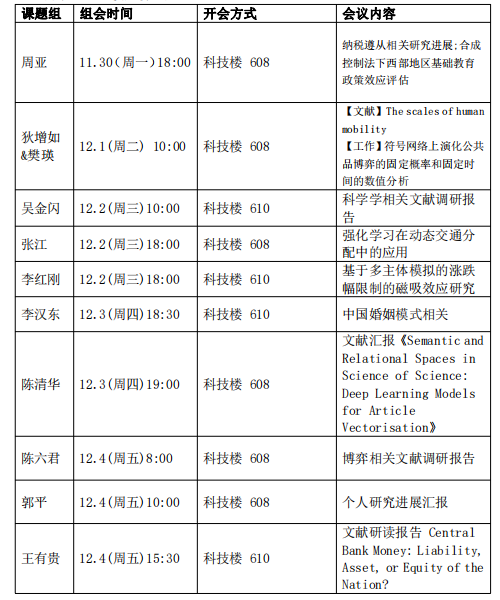 部分组会时间未确定,请感兴趣的同学加入开放组会交流QQ群,群号为 :790729133,及时跟进相关信息!