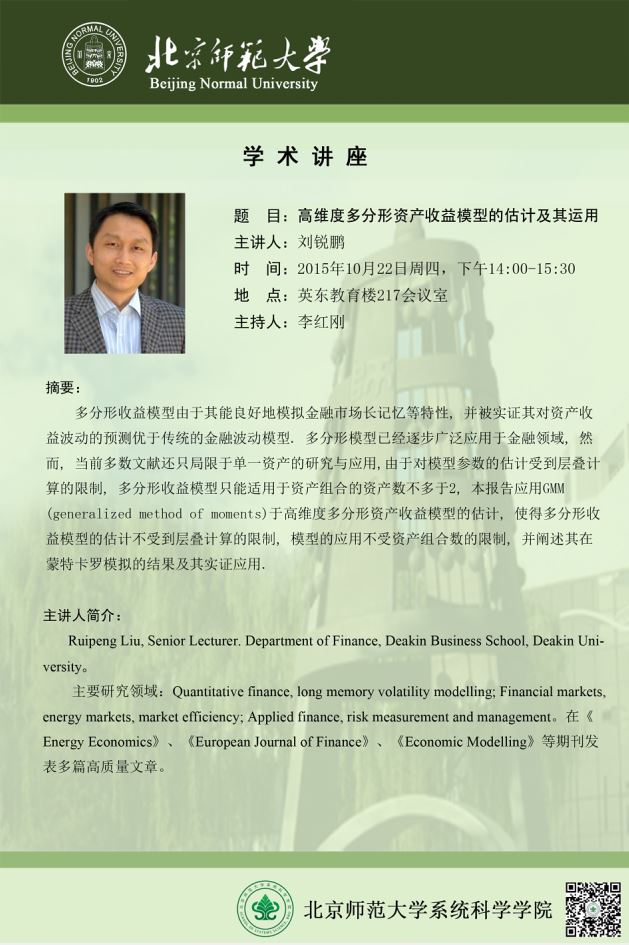 [讲座] 高维度多分形资产收益模型的估计及其运用