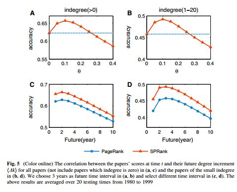 随着因特网的发展,现在研究者们越来越容易获得科学论文。然而,从大量的科学论文中发现高质量的作品不是一件容易的事情。在已有的算法中,Pagerank是比较具有代表性的一种。它源于谷歌搜索引擎的底层算法,在网络中通过迭代扩散过程为每个节点赋予一定的资源,节点的稳态资源即为它的重要程度。本文在Pagerank的基础上加入相似优先的扩散机制,即当一个节点接收下游节点扩散资源的时候,以一定程度忽略弱相似节点的资源。算法的有效性在美国物理学会引文网络上通过诺贝尔奖文章以及算法预测能力得以验证。另外,此算法对于引文中的蓄意行为有很强的鲁棒性。虽然此算法在本文中针对科学引文网设计,它可以自然的推广到网页搜索算法的设计以及社会网络中领导力的挖掘。