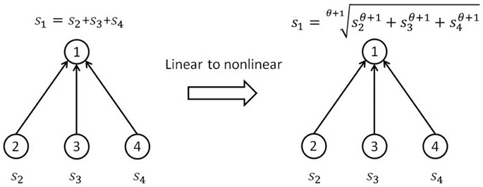 图1.从线性到非线性——非线性算法对PageRank算法随机游走机制的改进