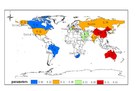 图2.全球前15碳排放国家CO2浓度对地表温度影响参数图