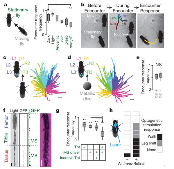 Figure 3: Leg mechanosensorysensilla neuron activity is necessary and sufficient for Encounter Responses.