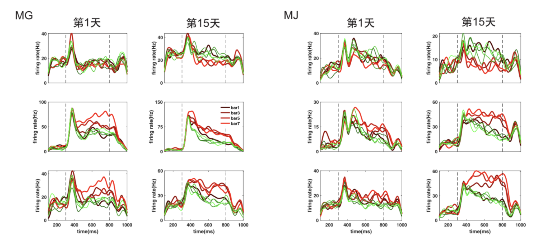 这是首次在猕猴的初级视皮层观察到类别响应,初级视皮层在训练后呈现类别表征可能是因为高级皮层区域例如V4或者外侧内顶叶反馈的结果。总之,在初级视皮层出现对刺激的类别表征,将更加有利于下游高级脑区读取信号,有效减少高级脑区在完成任务是的计算量。