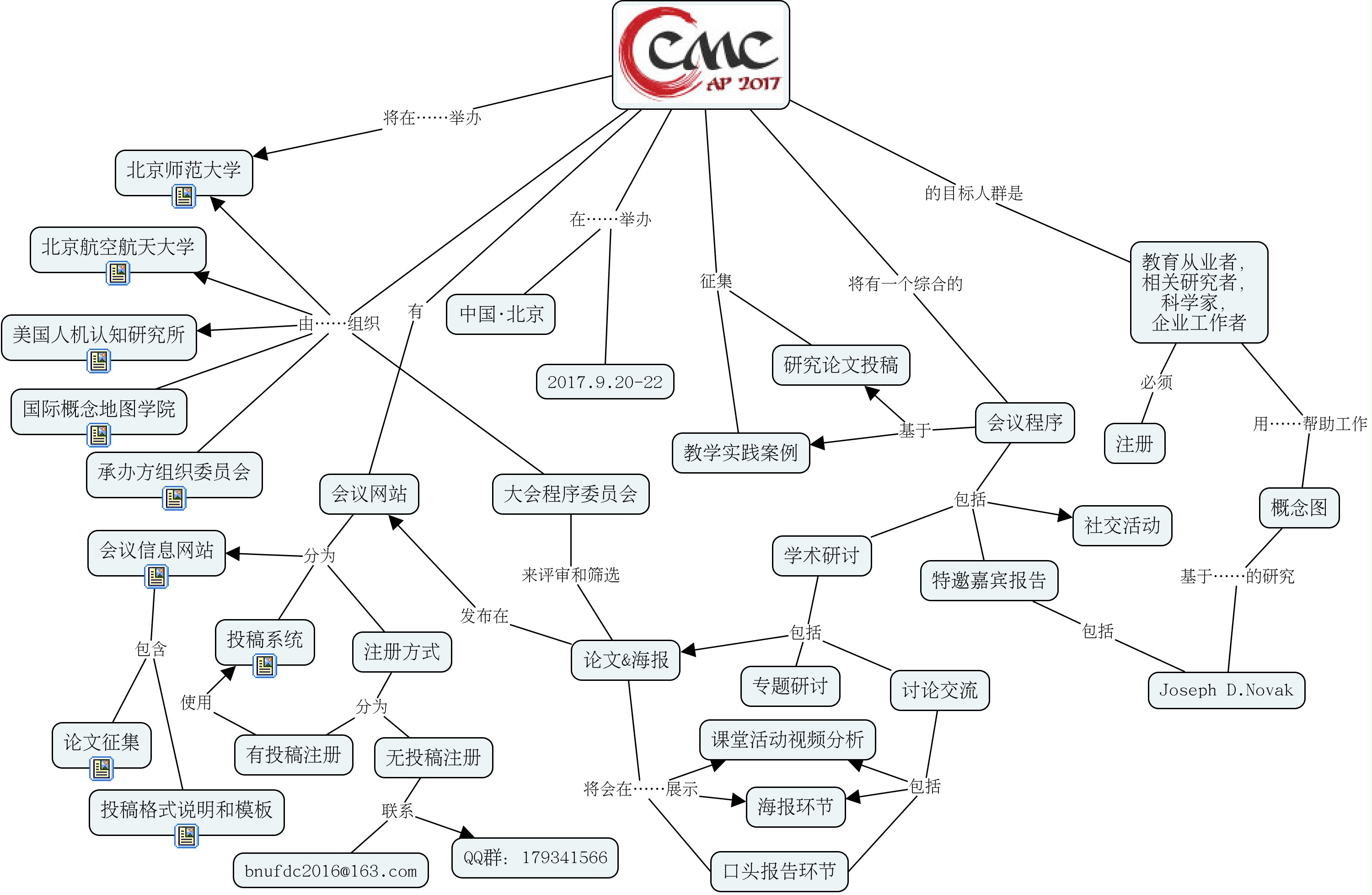 此前,在潘普洛纳(西班牙)、圣何塞(哥斯达黎加)、塔林(爱沙尼亚)/赫尔辛基(芬兰)、比尼亚德尔马尔(智利)、瓦莱塔(马耳他)、桑托斯(巴西)和塔林(爱沙尼亚)已成功举办了七届国际概念图大会,大会将来自世界各地的学者和对概念图感兴趣人都聚集在一起。考虑到亚太地区最近用户数量的不断增加,首届亚太概念地图会议也被视为第七届国际概念地图会议的区域延伸。这将是另一个给所有概念图使用者和研究人员分享想法的平台,特别是针对亚太地区。本次会议由swag免费影片 、北京航空航天大学和美国人机认知研究所联合组织。 (点击下面链接,可以查看对应的学术计划和论文:cmc2004,cmc2006,cmc2008和cmc2010,cmc2012,cmc2014和cmc2016。所有会议录可以从CMC会议记录页面下载)。