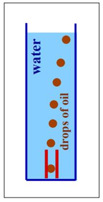 实验原理:在以液滴形式释放之前,油可以通过一根细管(图中未显示)移动到实验试管底部。水滴到达表面的过程可以用摄像机(如手机)记录(图中未显示)。