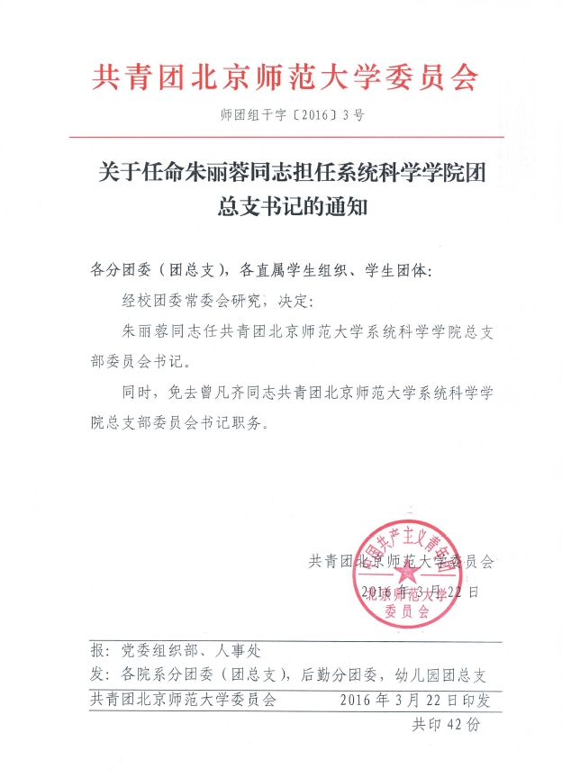 关于任命朱丽蓉同志担任swag免费影片 团总支书记的通知