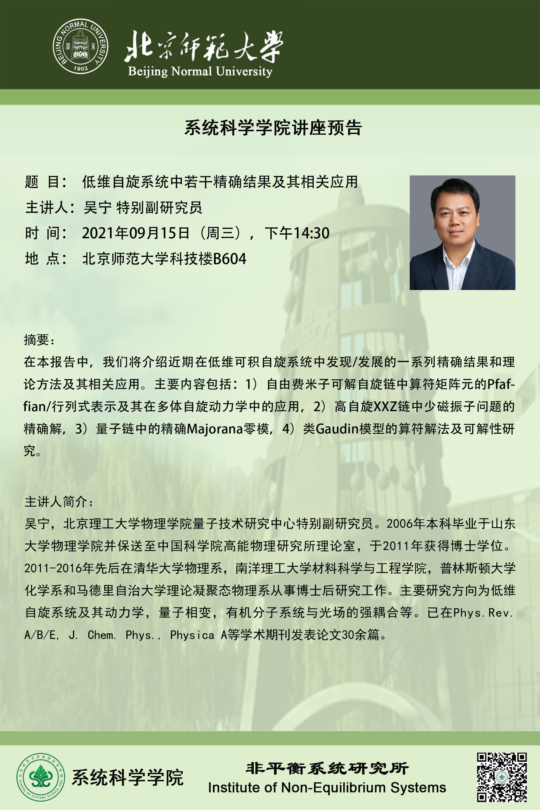 【讲座】低维自旋系统中若干精确结果及其相关应用