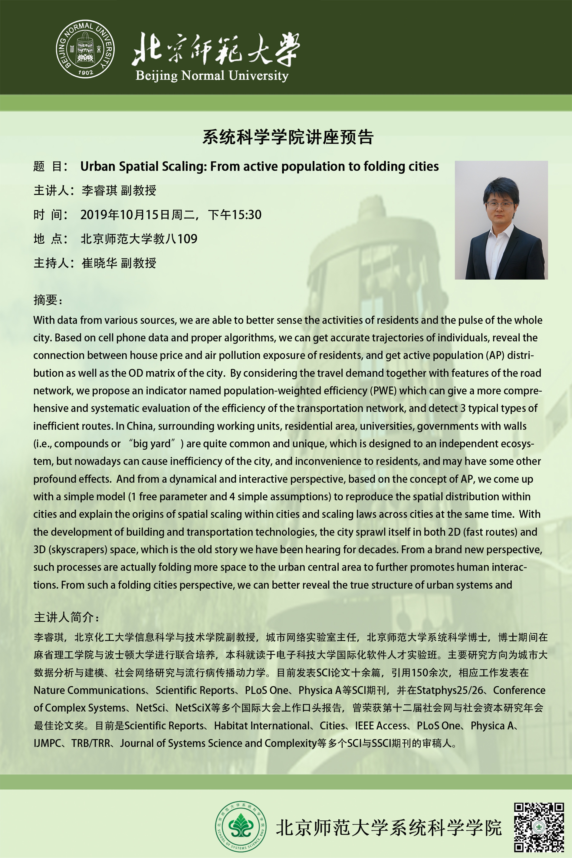 [讲座] Urban Spatial Scaling: From active population to folding cities