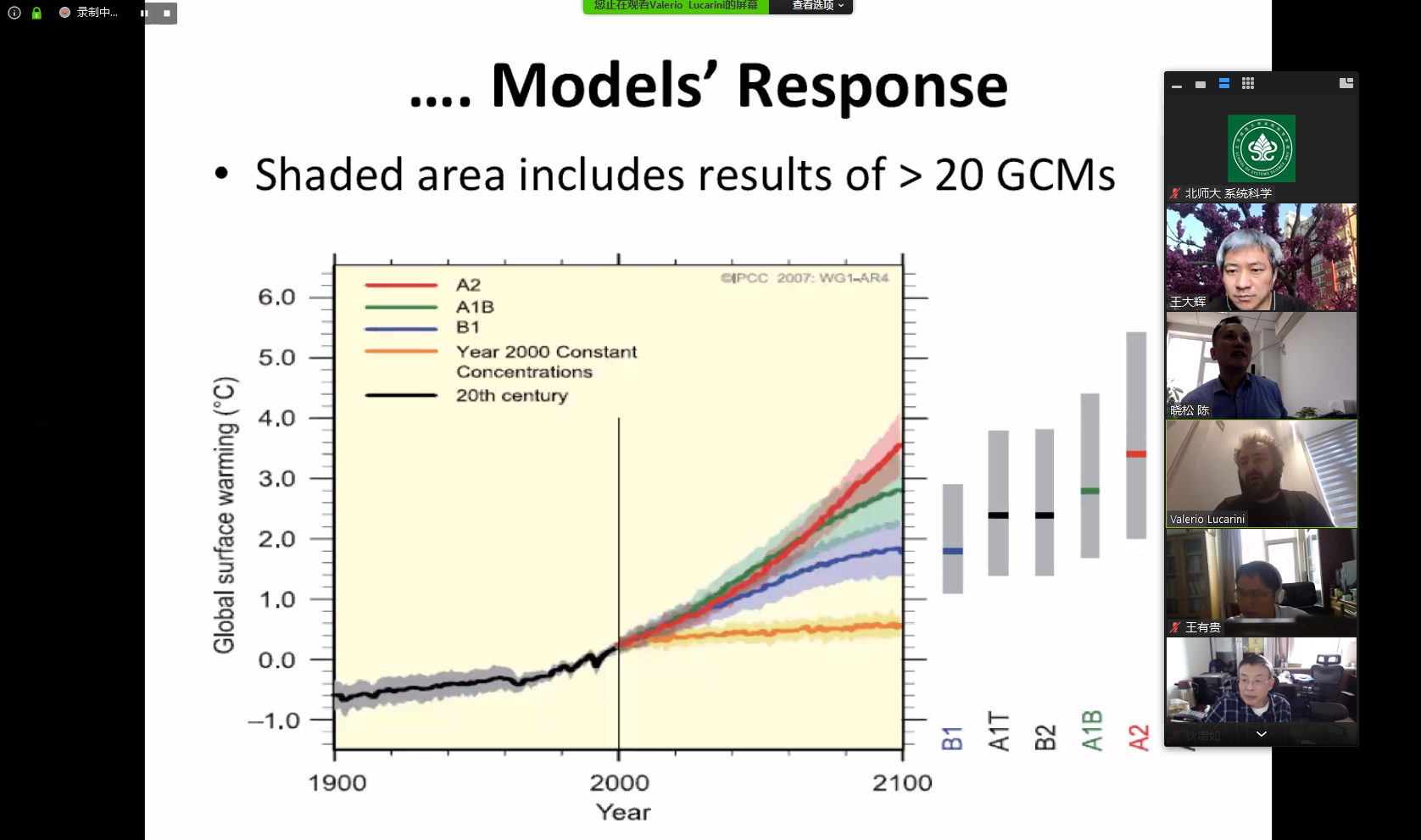 2020年4月30日下午,swag免费影片 邀请英国雷丁大学Valerio Lucarini教授为全院师生进行了主题为“Statistical Mechanics of Climate”的线上讲座。讲座由swag免费影片 院长陈晓松教授主持,全院师生及来自学校物理系、地理swag免费影片 和中国气象局、中科院气候所、美国夏威夷大学、集智俱乐部的专家学者和学生,逾130人参加了会议。并由集智俱乐部在bilibili网站上进行了同步直播(//live.bilibili.com/8091531),在线观看人数达到1111余人,观众反响热烈。