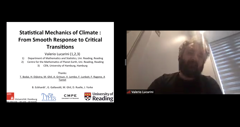 Valerio Lucarini教授是英国雷丁大学行星地球数学中心主任兼统计力学教授、德国汉堡大学理论气象学教授、皇家气象学会和数学及其应用研究所研究员,曾多次获欧洲地球科学联合会奖项和伦敦数学学会奖项。研究方向主要为气候动力学、极端天气、非平衡系统的统计力学、动力系统、随机过程、非线性光学等。
