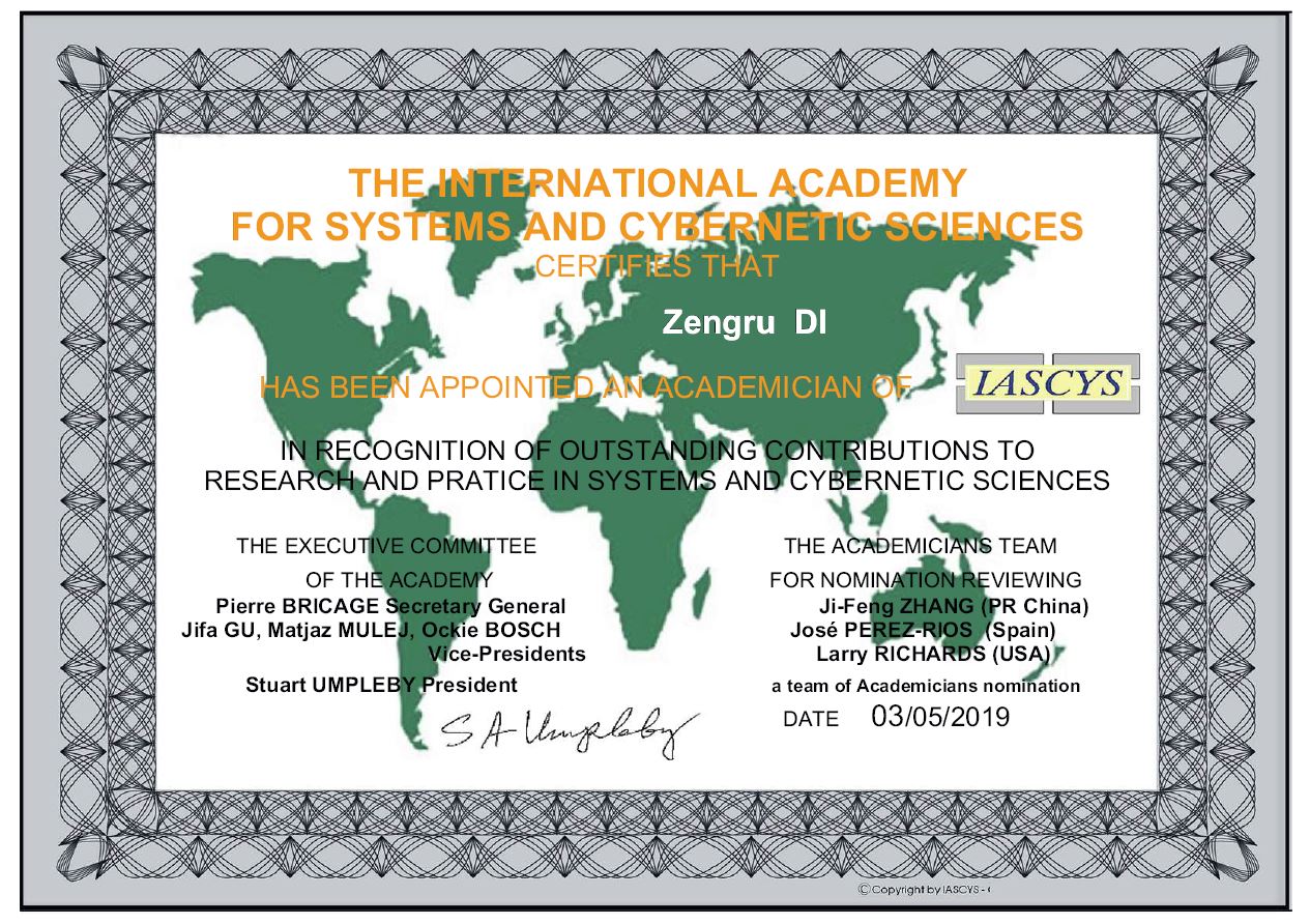 近日,我校swag免费影片 狄增如教授入选国际系统与控制科swag免费影片 院士(Academician of the International Academy for Systems and Cybernetic Sciences,简称IASCYS院士),以表彰其在系统和控制科学的研究和实践中的杰出贡献。