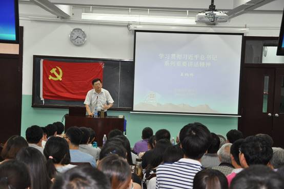 王炳林教授在报告中引经据典,语言幽默风趣,具有极强的感染力,引得师生频频鼓掌。会后,三院系师生共同合影留念。此次报告会的学习,有利于大家进一步深入学习领会和贯彻习总书记系列重要讲话精神,对于进一步深入推进“两学一做”专题教育具有重要的指导意义。