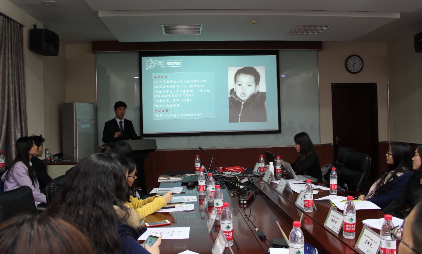 接下来,活动负责人马玉财为与会成员详细介绍了本次活动策划。活动地点在北京太阳村,太阳村作为非政府的慈善组织(NGO),十多年来以无偿代养、代教服刑人员无人抚养的未成年子女为己任,依靠自身建设的果树种植基地和社会爱心人士的捐助作为资金来源。在活动组织方面,除却来自16个院系的20个研究生党支部,本次活动还联合了北京荣耀爱心志愿者服务队、哲学swag免费影片 研究生会等组织共同参与。在活动流程方面,设置了开幕式、支部共建公益活动、校内义捐义卖、校内总结闭幕等9项子活动。随后他对大家汇报了活动前期准备工作,包含喷绘、横幅、旗帜等宣传物品制作、前期太阳村的实地走访等。同时,他向大家强调了本次活动的注意事项和志愿者守则,尤其是活动中要用心对待太阳村的孩子们,不要刻意打扰他们原本的生活。