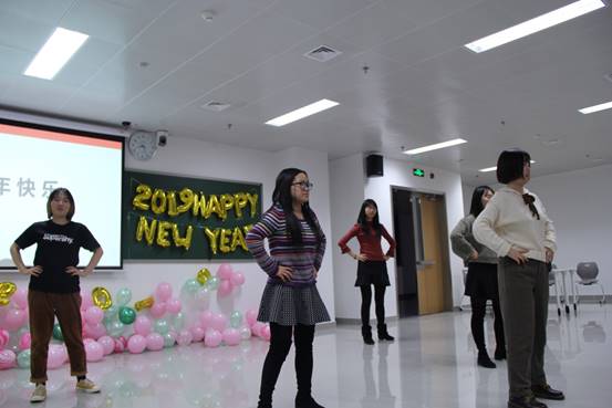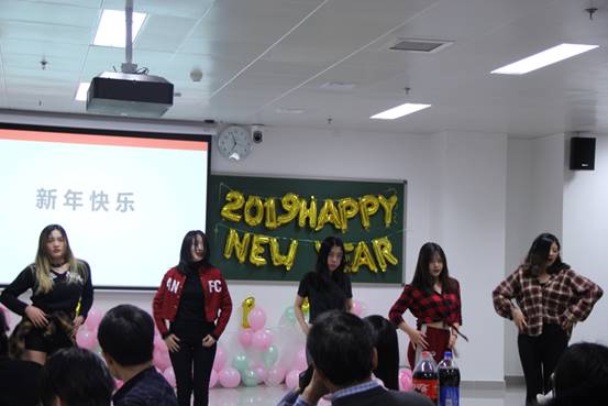 活动伊始,率先播放了来自诸位老师和各年级学生精心准备的新年祝福暖场视频。在大家的声声祝福中,主持人正式宣布了晚会的开始。由2018级硕士新生高玥、张奥博等六位富有青春活力的女同学为我们带来了激动人心的开场舞,引爆全场。在《Boom》的歌声中,演员们尽情舞蹈,成为灯光下最夺目闪耀的风景,也为我们的晚会点燃了躁动的氛围,点燃了观众们的情绪。在辞旧迎新之际,我们欣赏着歌舞,我们正年轻。