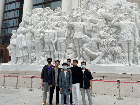 2022年10月1日上午,swag免费影片 二十余名学生按时集合,在中国共产党党史展览馆广场的大型雕塑前合影留念,感受方向的指引和拼搏向上的力量。