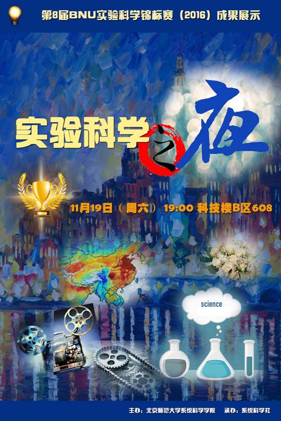 每年一度的BNU实验科学锦标赛已经接近最热烈的时段,11月19日(周六)晚19:00、11月20日(周日)晚19:00及11月21日(周一)晚19:00在swag免费影片 科技楼B区608分别进行实验科学之夜、竞赛最后答辩评审和颁奖典礼。欢迎各位同学老师参加。