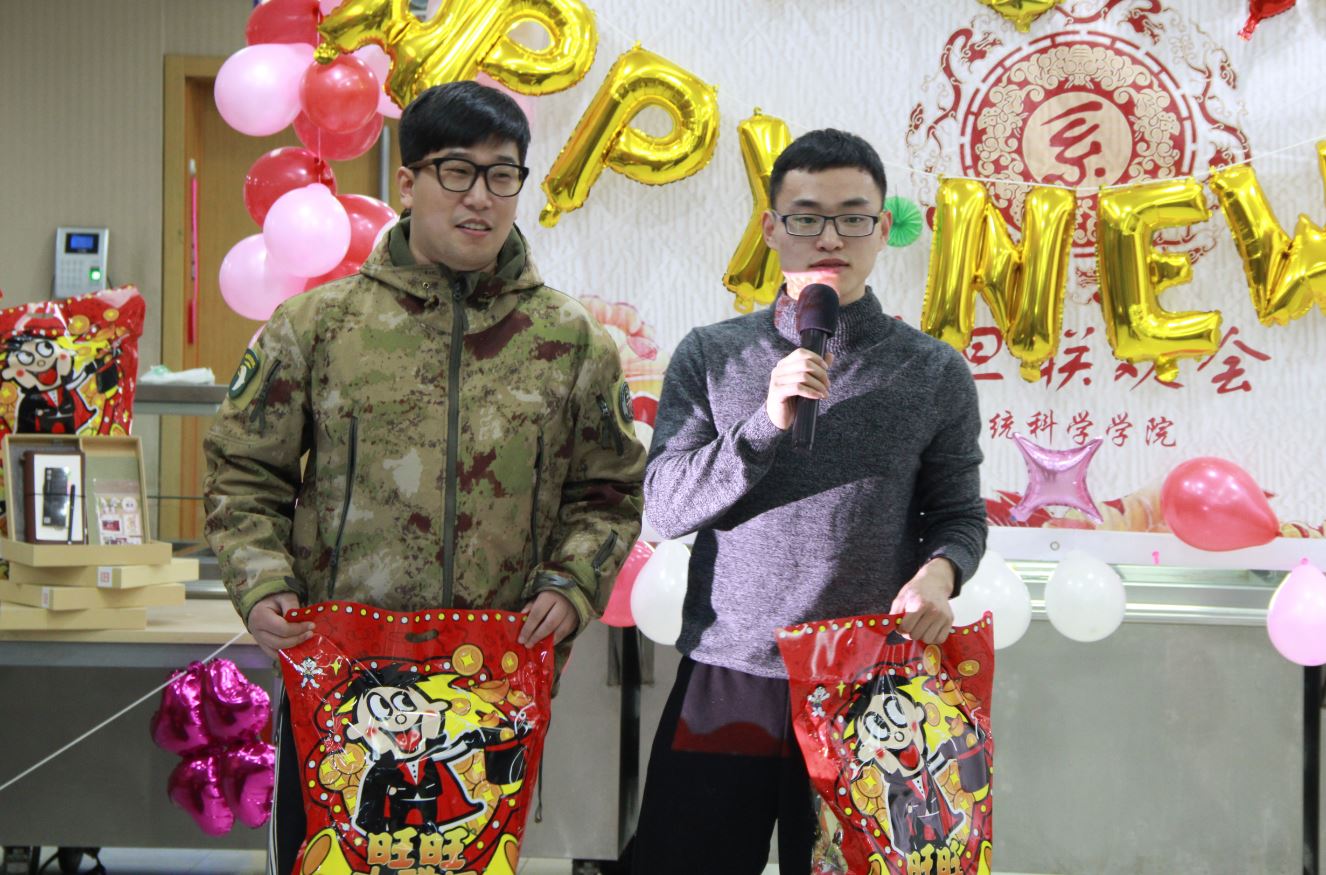 在狄老师的新年贺词后,晚会节目开始上演。王鹏皓和武晓忠献上动听的歌曲《海芋恋》;文雷的脱口秀节目《我们》赢得现场观众的阵阵掌声;陈清华老师的女儿朵朵进行了电子琴演奏。在三个节目后,开始了本场联欢会的第一个游戏环节——铁人四项,四个小组分别派出老师同学参加一口气喝可乐、筷子夹弹珠、朗诵诗歌吹蜡烛、公主抱深蹲等环节,全场欢笑不断,刘奥强抱郑老师深蹲更是成为本次游戏的亮点。接下来的抽奖环节迎来了晚会的第一个小高潮,主持人宣布三等奖的祝福语,大家通过扫入场贺卡上贴着二维码,查看自己是否中奖。在游戏和抽奖后,节目继续,高雨薇、赵茜、高飞带来吉他弹唱《小手拉大手》;王铭崧、孙铠嘉、李敬一、史惠泽、王程锦、高林表演的小品《奉承》更是掀起了整场联欢会的高潮,也让我们看到研一同学演技和创造力,为swag免费影片 注入了新的活力;张江老师的女儿张玲祎演唱了《Let it Go》,天真稚嫩的童声格外可爱。接下来主持人公布了二等奖的祝福语,伴着第二次的抽奖,开始本场的第二个游戏环节《系统科学之猜猜猜》,swag免费影片 师生同心协力做游戏,猜着与学校生活、系统科学专业相关的各种词语,场面热闹欢快,欢声笑语不绝于耳。下面的节目是全体研一新生带来的舞蹈《PANAMA》;研三的李志成、刘奥强、龚力、马玉财合唱了一首《啊,朋友再见》。歌曲之后,进行了第二轮《系统科学之猜猜猜》,并公布了一等奖的祝福语,联欢会进入尾声。最后,袁强老师声情并茂地演唱了《北方吹》、《南泥湾》等歌曲,为元旦联欢会画上圆满句号。