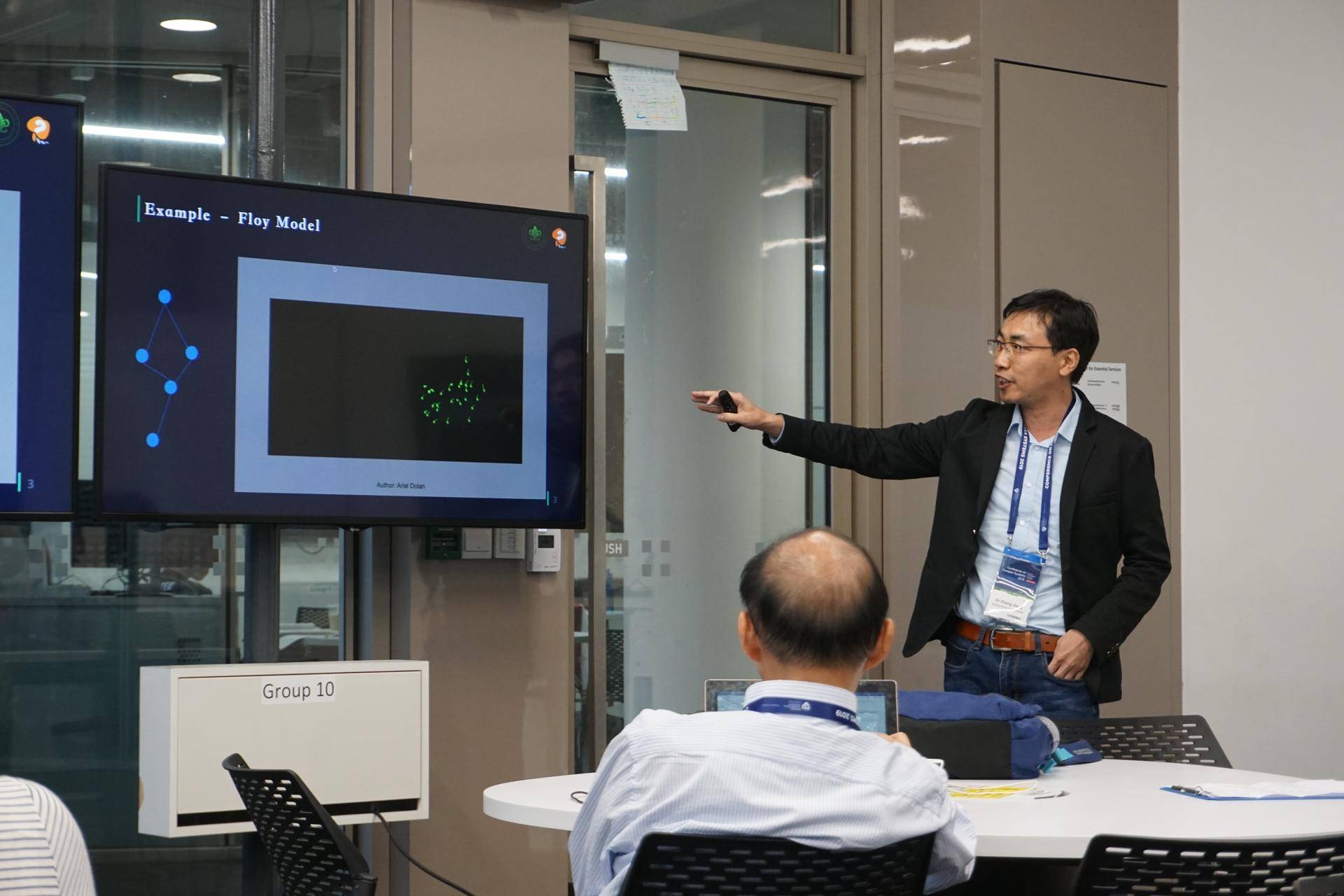 在会议期间,韩战刚教授在大会 Ignite Session 环节做口头报告,题目为 “A swarm robot control that is d on the position of the agents” 。李红刚教授在Parallel Session: Economic & Financial Complexity做了题为“Trader Interaction, Behavioral Convergence and Asset Market Volatility”的报告。 张江教授在 Parallel Session: Complexity of Information Communication Technology 做了题为 “A General Deep Learning work for Network Reconstruction” 的报告。李小萌老师和硕士生黄思羽在 Poster Session 进行了 “Analysis of Possible Transit Country in Global Migration” 的海报展示。