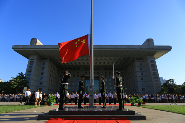 7月1日,swag免费影片 在京师广场举行纪念建党94周年升旗仪式暨新党员宣誓和老党员重温入党誓词活动。校党委副书记刘利,副校级干部周作宇,校长助理陈丽、张强以及有关机关部处、各院系党政负责同志出席活动,新发展的教工党员和学生党员共计1200余人参加活动。升旗仪式由副校级干部周作宇主持。