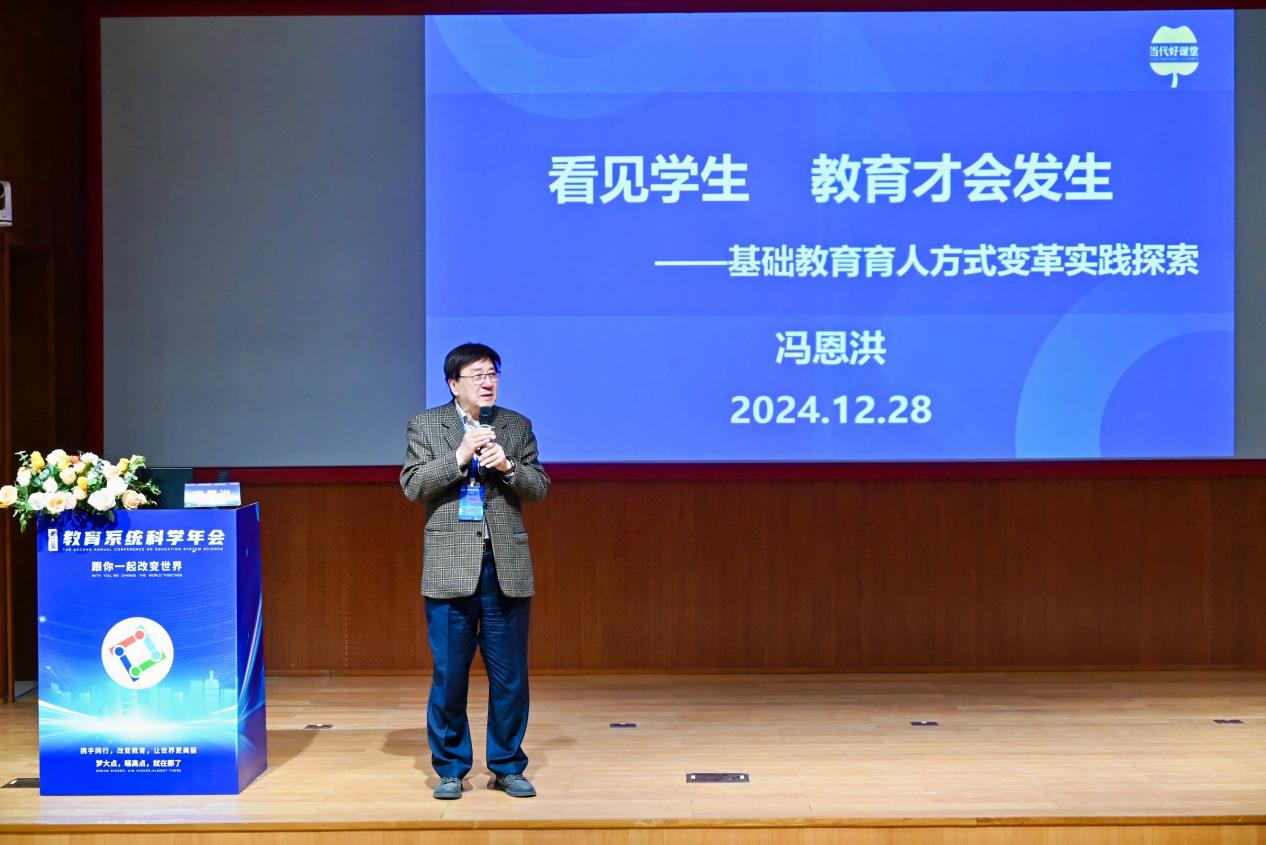 次日,来自西安市东城第二学校的冯恩洪先生作大会特邀报告,题为《看见学生,教育才会发生——基础教育育人方式变革实践探索》。冯恩洪先生指出,时下基础教育,教育价值群体性缺失,社会性情感集体性迷失。呼唤守正教育价值、创新管理文化,知识本位见书不见人,妨碍人的社会化和人的个性化和谐发展,妨碍教育强国。